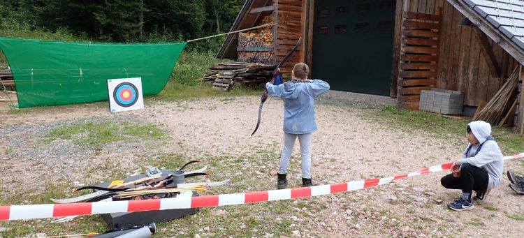 Am Montag beschäftigten wir uns mit verschiedenen Techniken, die uns helfen sollten im Wald gut klarzukommen: von Pfeil und Bogen bis Schwertkampf, Kochkünste und Hängematten-Bau, es gab genug zum Lernen!